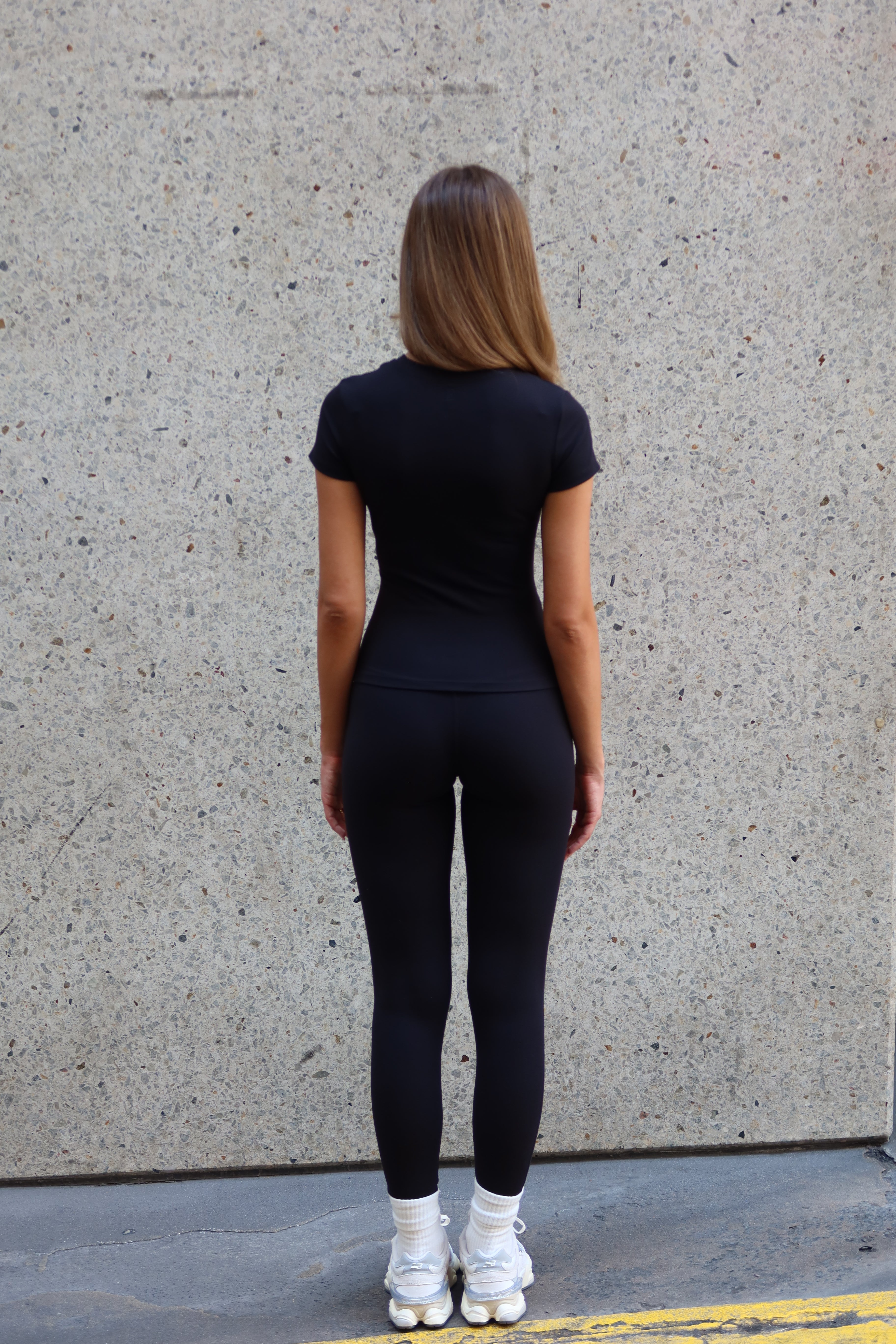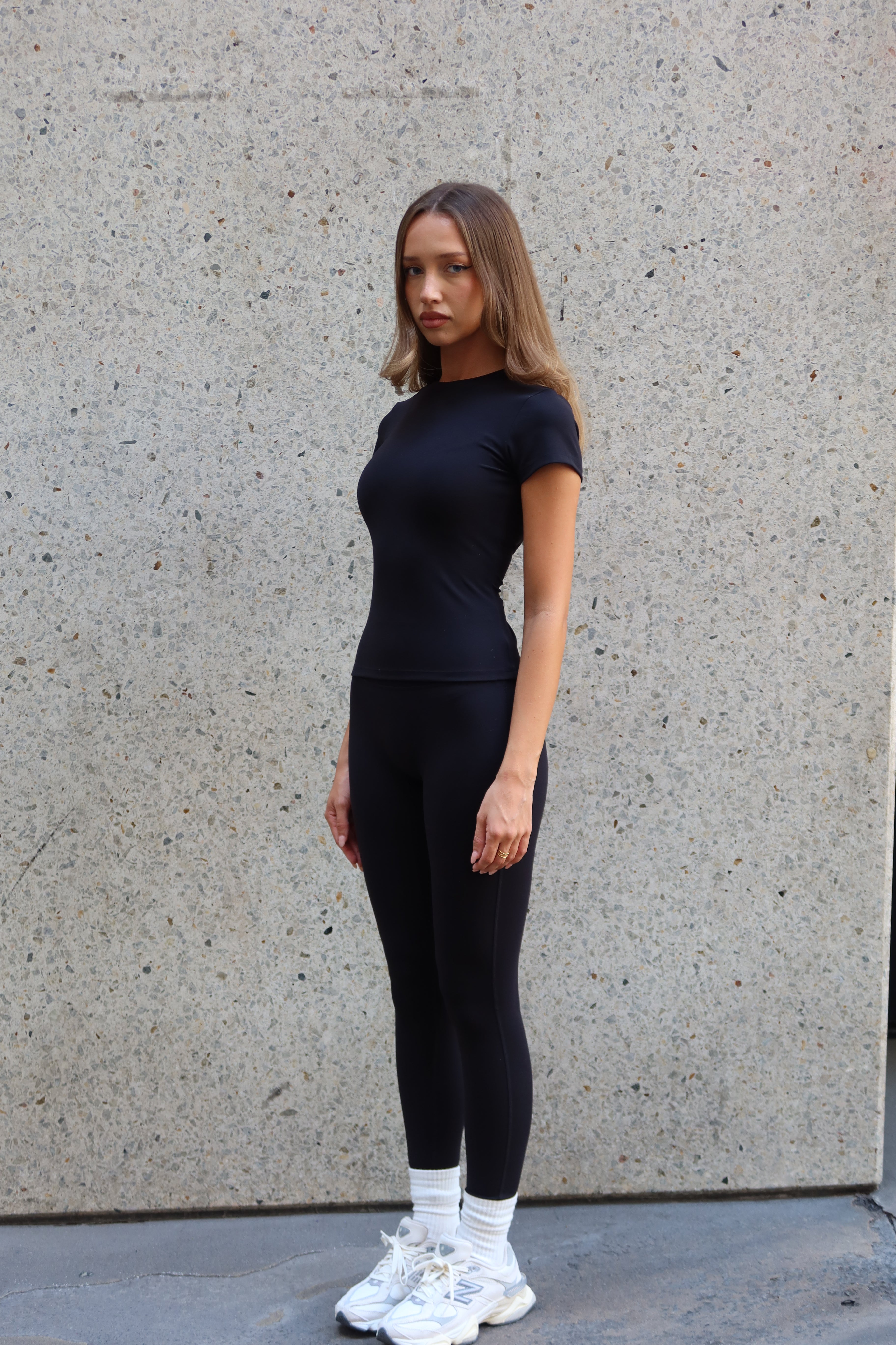 The perfect tee, elevated. The Elloré Sport Basic T-Shirt is a refined, body-hugging essential designed to bring softness, structure and ease into your everyday uniform. Crafted from our Soft-Touch Performance fabric, it offers a smooth, sculpting feel that moves with you - breathable enough for Pilates, polished enough for the airport and effortless for everything in between.