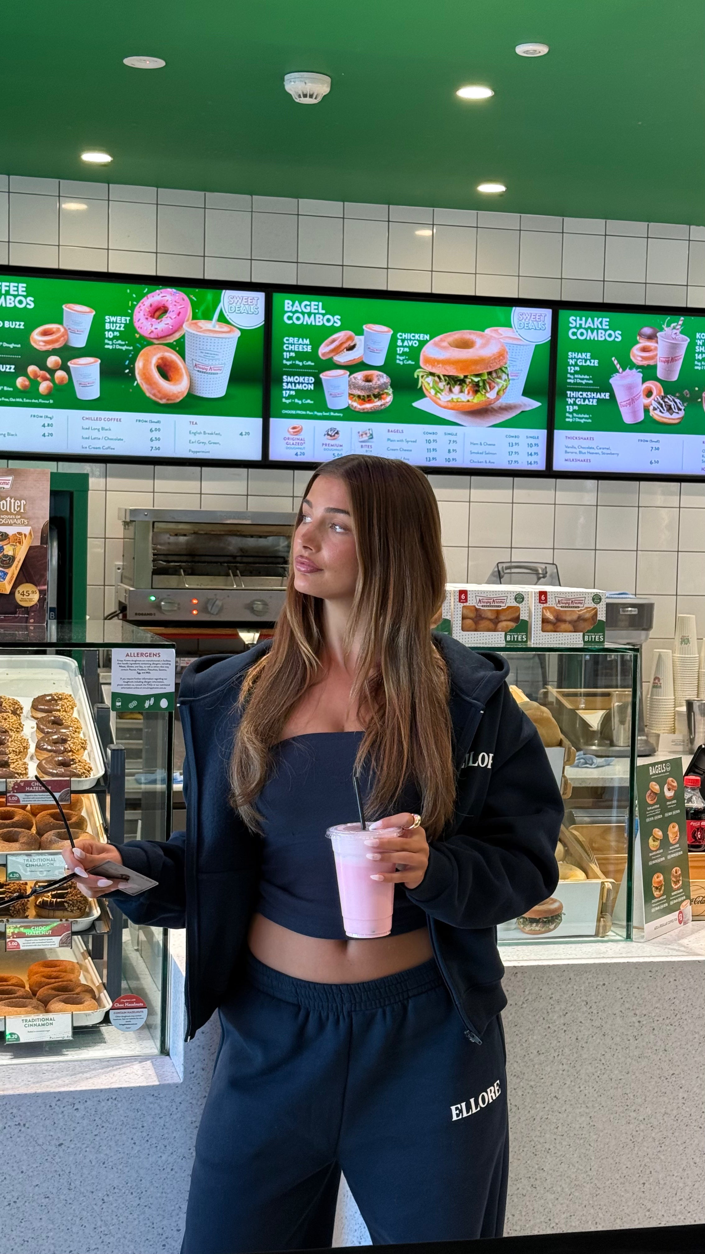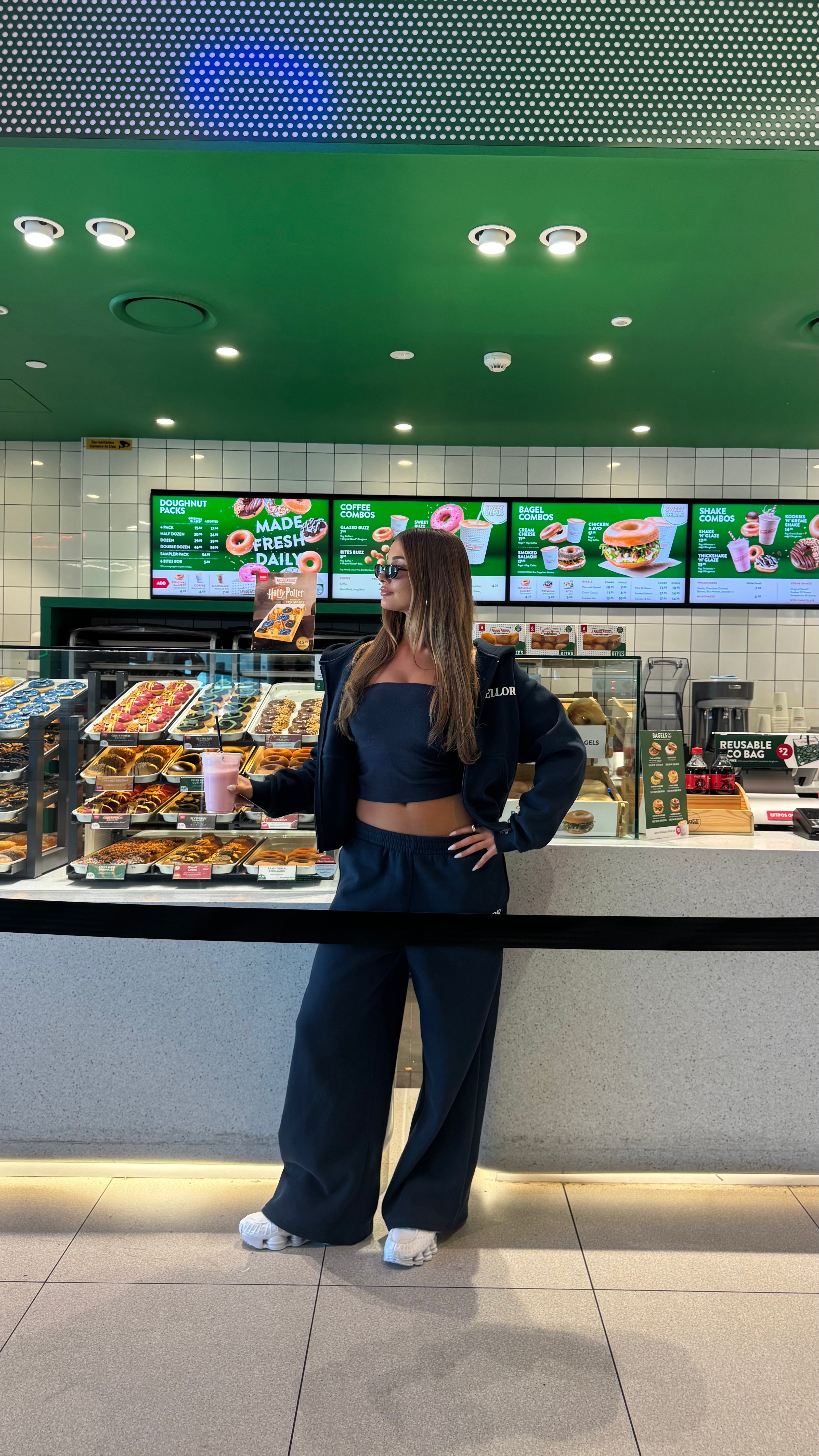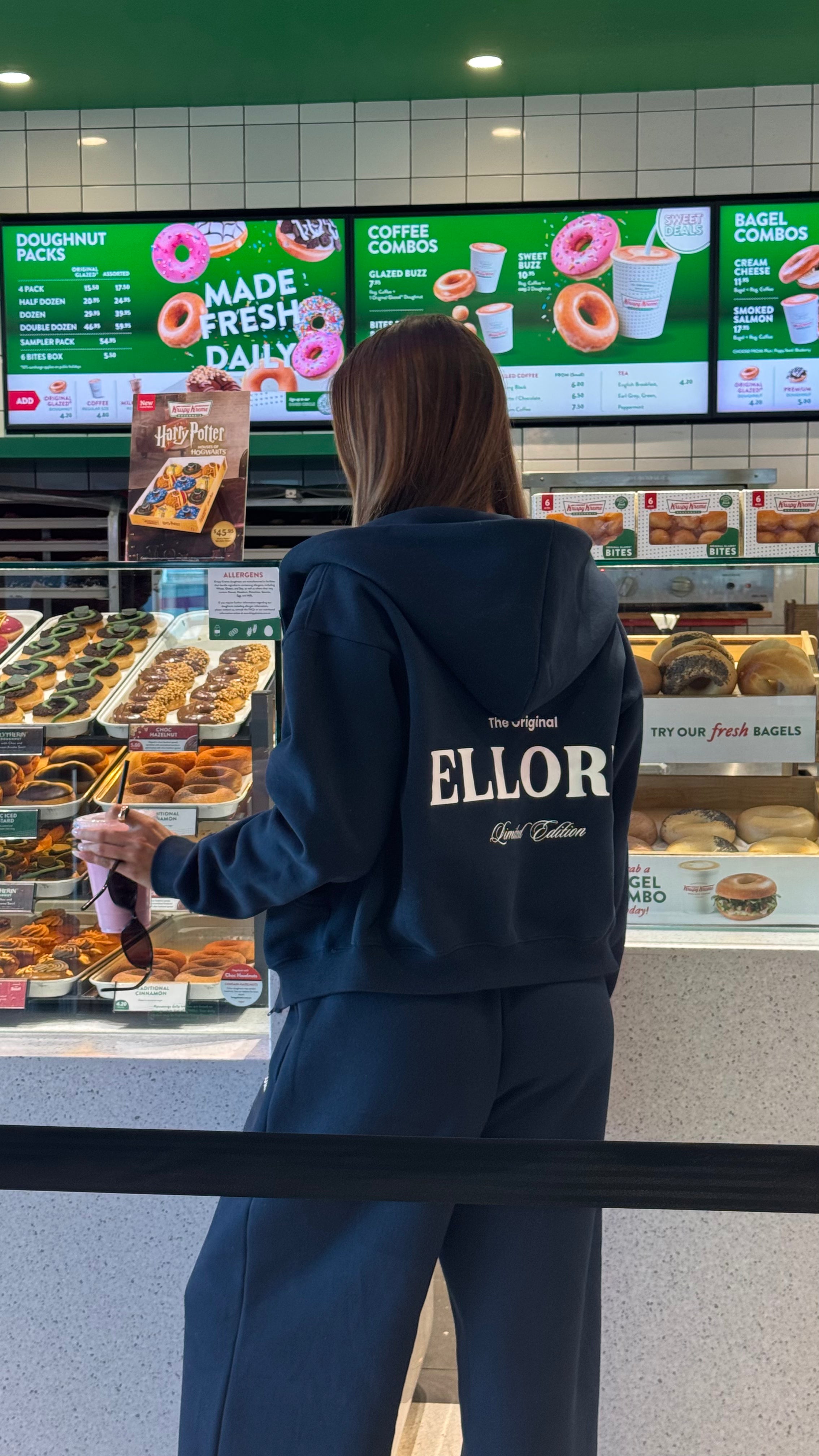 The kangaroo pouch pocket makes it functional on the go, and the Limited Edition ‘ELLORE’ logo detail on the back adds an elevated touch. Designed with a cropped length and boxy fit, it pairs seamlessly with the rest of the Jet Set in Jet Midnight pieces or stands perfectly on its own.
