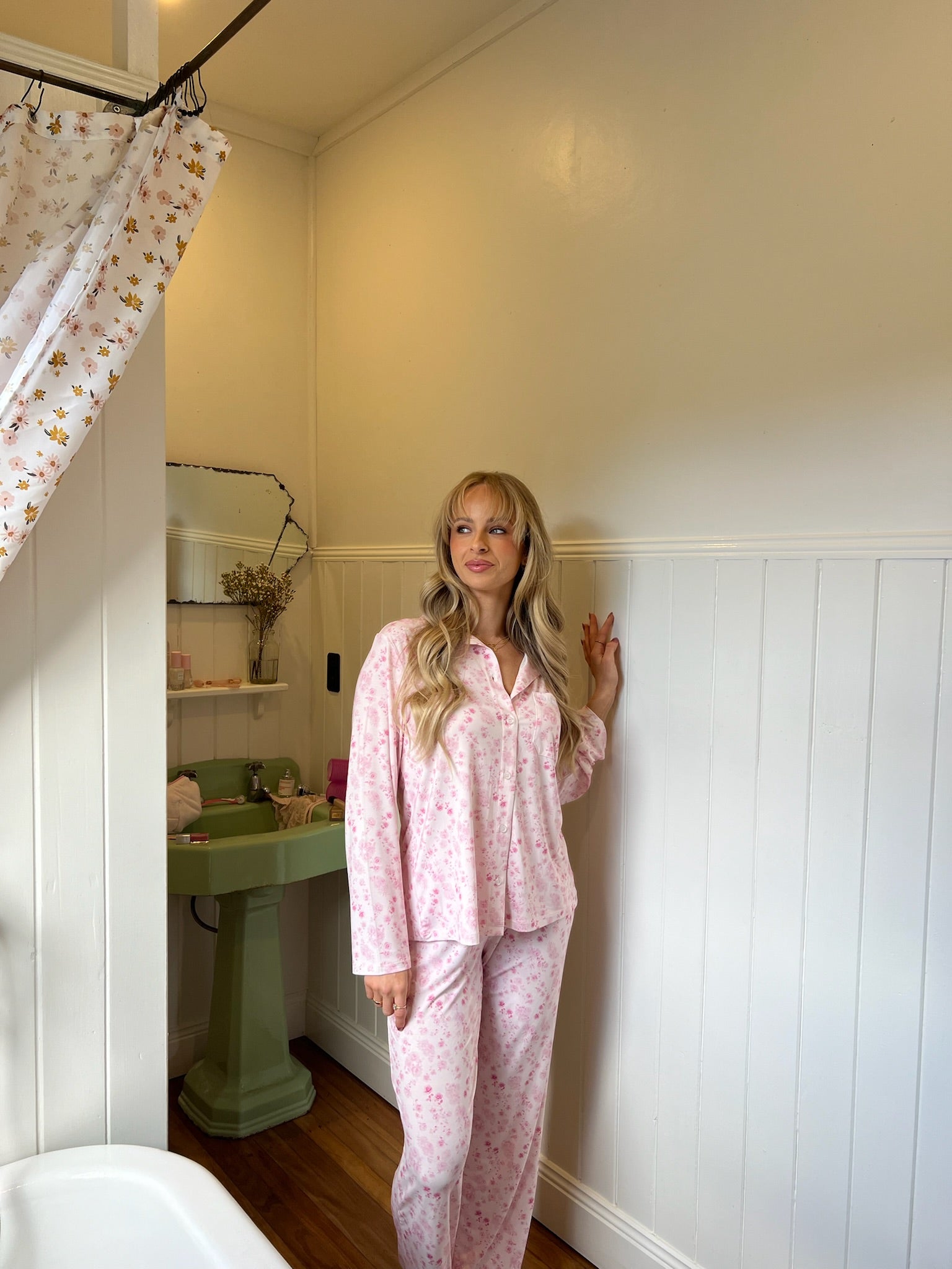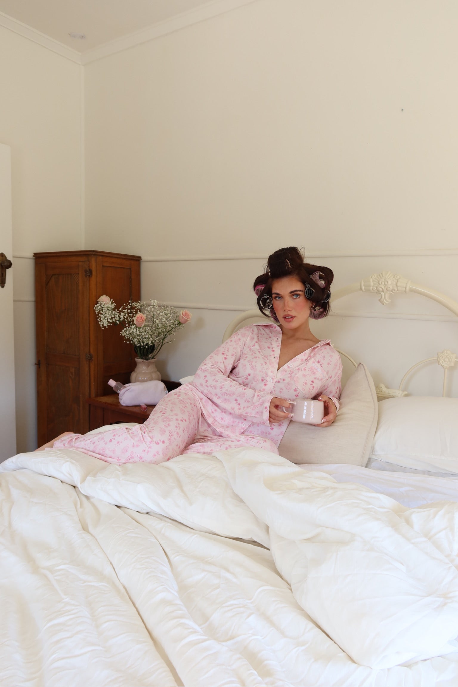Inspired by Maya’s favourite childhood pjs, this dreamy top is soft, stretchy, and made for all-day lounging. With sweet pink tones and delicate details, it’s the ultimate soft girl staple. Pair it with our matching Maya Pants for the full nostalgic look and feel.